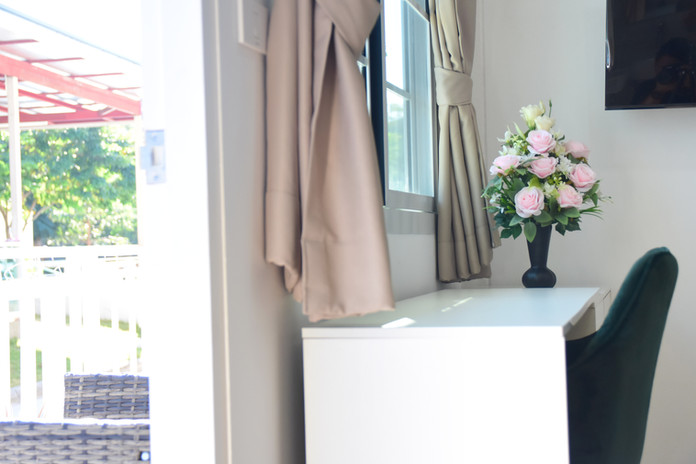 มีระเบียงส่วนตัวให้นั่งผ่อนคลาย ชมบรรยากาศสวนโดยรอบ สงบ ผ่อนคลาย ปลอดภัย พร้อมทีมสหวิชาชีพดูแลตลอด 24 ชั่วโมง